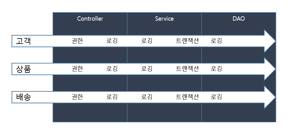 만약, 필수적으로 처리되어야 하는 로그, 보안, 트랜잭션, 예외 처리와 같은 부가적인 기능들이, 규모가 커다란 시스템에서 각각의 기능마다 추가된다면 코드가 얼마나 길어지게 될까요?
