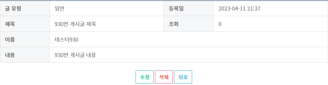 36페이지의 2번 게시글 상세 페이지에서 게시글을 삭제해 보겠습니다.