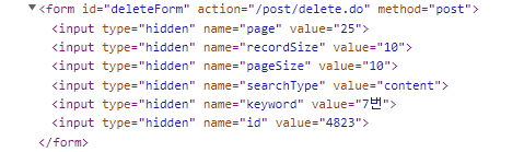 <form id="deleteForm" action="/post/delete.do" method="post">